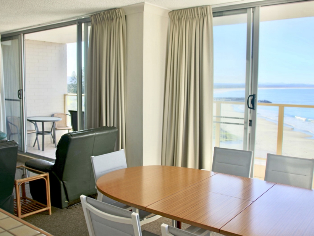 EBBTIDE UNIT 37- 3 bedroom unit on top floor. Thrilling Pacific Ocean views on one side and peaceful Wallis Lake on the other. Ebbtide is directly opposite Forster Main Beach offering unrestricted views from protected balconies. Tastefully furnished unit with panoramic views all around. Ensuite to main bedroom has shower, vanity & toilet. Modern kitchen with dishwasher. TV & DVD.The block features tiled swimming pool and lift facilities to each floor. A security building. Stroll down to main street shops, cafe's, restaurtant. Boat hire available in Little Street.1 Queen + 2 singles. MINIMUM 1 WEEK BOOKING. FOR AVAILABILITY AND PRICING PLEASE REFER TO OUR WEBSITE www.ljhforster.com.au