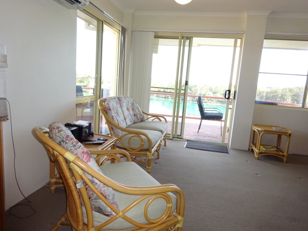 HAVEN WATERS 7. Top floor quality lakefront apartments designed to capture magnificent views and wonderful sunsets over Wallis Lake. Positioned close to boat ramp, lake baths and within easy flat walking distance to Forster Main Street shopping and Main Beach. Features: Recently painted throughout, AIR CONDITIONER installed March 2015, open plan kitchen spacious lounge/dining. SPA bath in main bathroom, ensuite off main bedroom. Dishwasher, Digital TV , VCR/DVD combo, phone for incoming calls. LIFT FROM CAR LEVEL TO ALL FLOORS.Queen bed 1 x Double, Tri bunk + 1 Single, NO LESS THAN 3 DAY BOOKINGS OR 1 WEEK IN PEAK SEASON, CONTACT AGENT FOR AVAILABILITY AND PRICING www.ljhforster.com.au