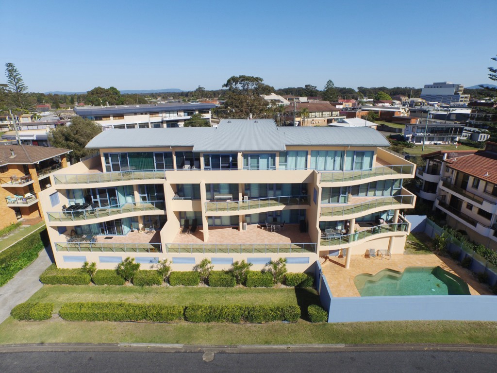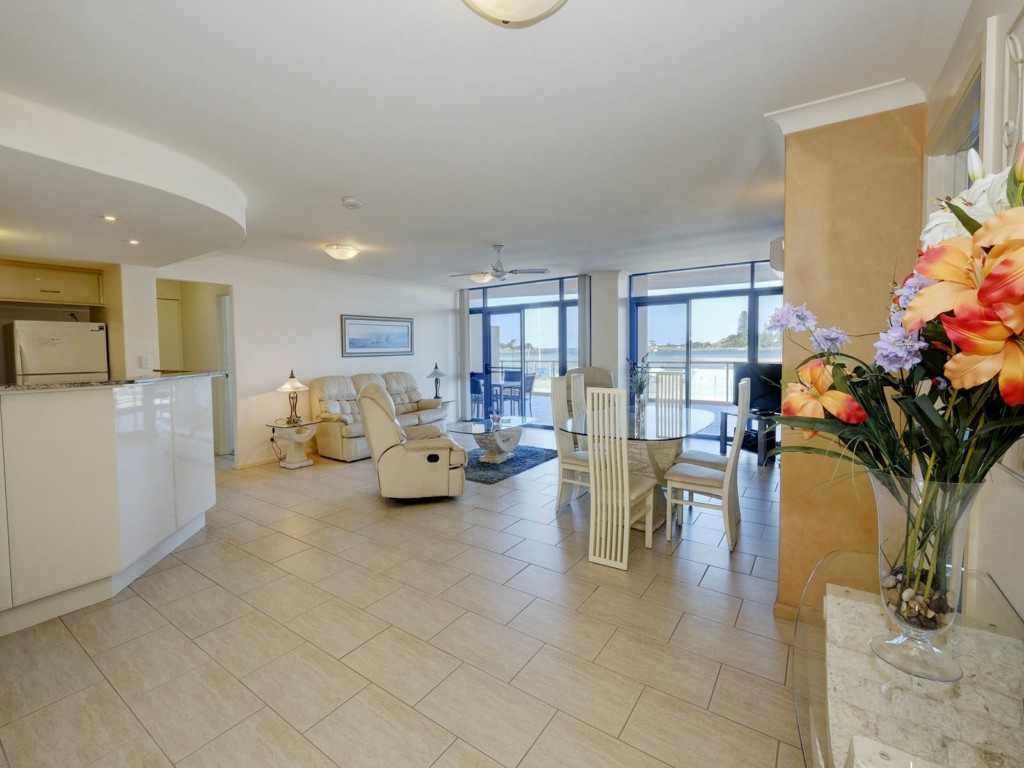 SOLAIRE Unit 2- Luxury 2 bedroom apartment on the 1st floor, security building in Wharf St, Tuncurry - walk to the shops, theatre, club, lake and beaches. Features:- Waterviews from all living areas & bedrooms. Well appointed modern open plan kitchen with marble benchtops, dishwasher and microwave. Spacious tiled, air conditioned lounge/dining area with TV, DVD, VCR & ducted vacuum system. Large master bedroom with queen bed, ensuite ( SPA bath, shower, toilet and vanity) ceiling fan, airconditioner & walk in robe. 2nd bedroom has 2 single beds & ceiling fan. The huge balcony is perfect for entertaining. The complex has a lift and swimming pool. All you could want for a relaxing family holiday. No linen supplied $300 security deposit. NO LESS THAN 3 DAY BOOKINGS OR 1 WEEK IN PEAK SEASON, SHORT BOOKINGS IN WINTER MUST PAY FULL WEEK www.ljhforster.com.au