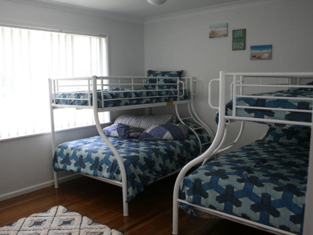 'Kent 6' Newly renovated 3 bedroom house. Across the road from Woolies and a short walk to shops, pubs and restaurants. Close to rock pool beach, park and lakeside walk. 2 bathrooms, air-con and BBQ area. TV in every room! A great home for all the family to create wonderful memories long into the future. sleeps 9. Qn bed, 2 x Tri Bunks. MINIMUM 3 NIGHT STAY. Contact LJ Hooker for further information 02 65916401 or ljhforster.com.au Linen not supplied
