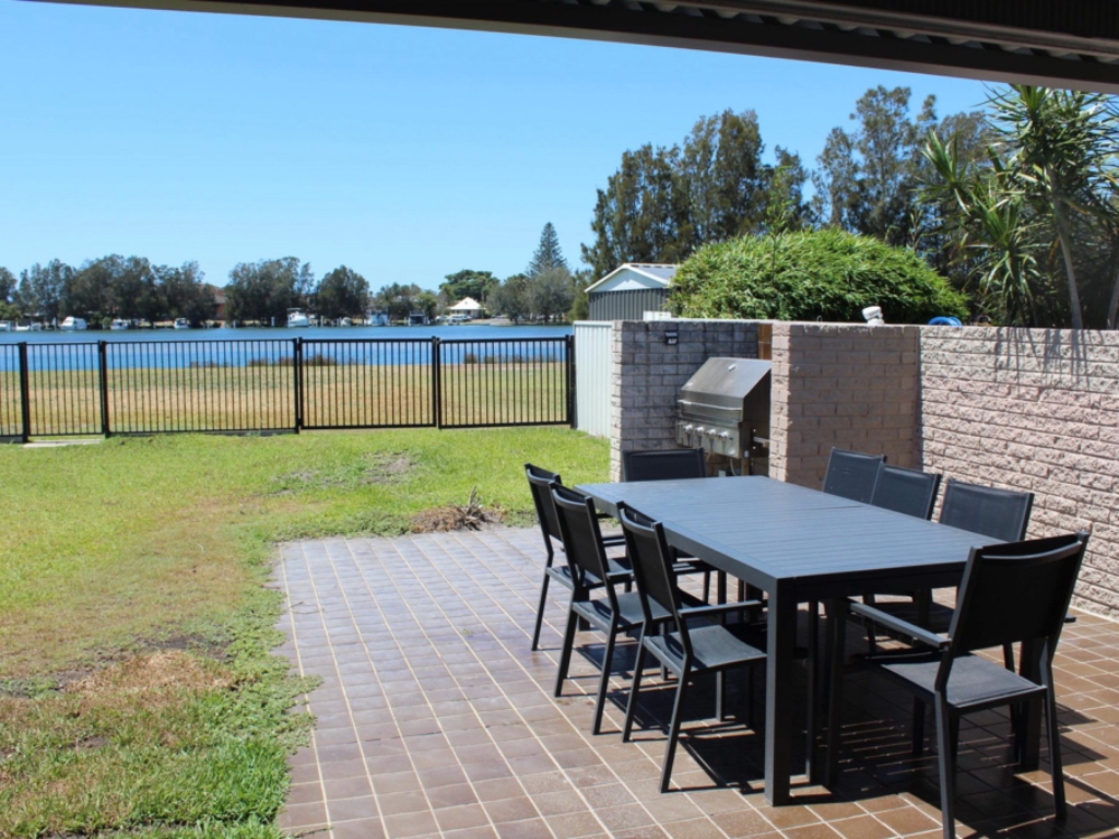 RESTPOINT 18. Set on the waterfront in a quiet cul-de-sac in Tuncurry, this 4 bedroom home is a perfect retreat for the extended family, kids, dog (maximum 2 x medium size dogs) and boat. Plenty of mud crabs and fish to retrieve from your own backyard and only minutes to pristine beaches. Easy access for boat to enter the lake. Forster town centre is only a short drive away with a beautiful selection of restaurants, cafe's, local shopping opportunities and main beach. Features 4 spacious bedrooms, 2 bathrooms, WIFI and Air Conditioning. Well equipped kitchen and BBQ available. 2 x Queen, 2 x tribunks, ALL LINEN & TOWELS INCLUDED. NO LESS THAN 3 DAY BOOKINGS AND MINIMUM 1 WEEK BOOKINGS IN HOLIDAY PERIODS. FOR AVAILABILITY AND PRICING PLEASE REFER TO OUR WEBSITE www.ljhforster.com.au